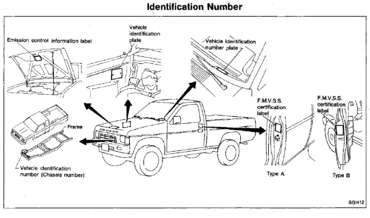 te dejo una imagen con la ubicación del VIN o número de Chasis de la nissan Fiera.